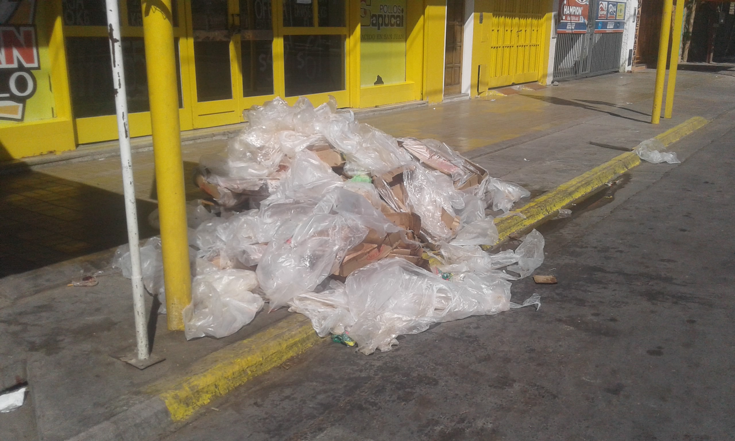 Un lector envió un mensaje y el siguiente comentario: "La avícola que se encuentra en España y Estado de Israel permanentemente deja basura sin embolsar en la vereda".