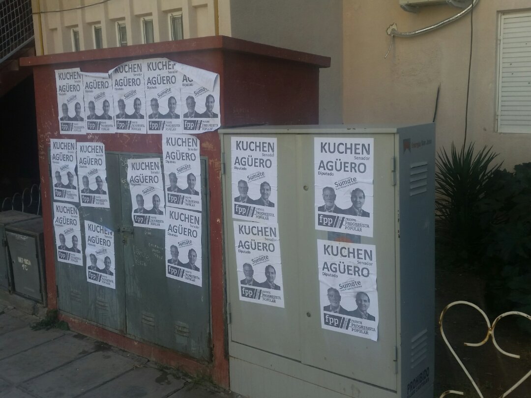 El lector Carlos Fiorentino envió una imagen y el siguiente comentario: "Así amanecimos los vecinos del Barrio San Martín, dañaron nuestros gabinetes de luz, gas y telefonía, no tuvieron reparo en la propiedad privada. Además vandalizaron los postes de las luminarias sobre calle Catamarca que tienen a penas 2 semanas de colocados. Lo peor es que la campaña recién comienza. Espero se acuerden de limpiar el daño".