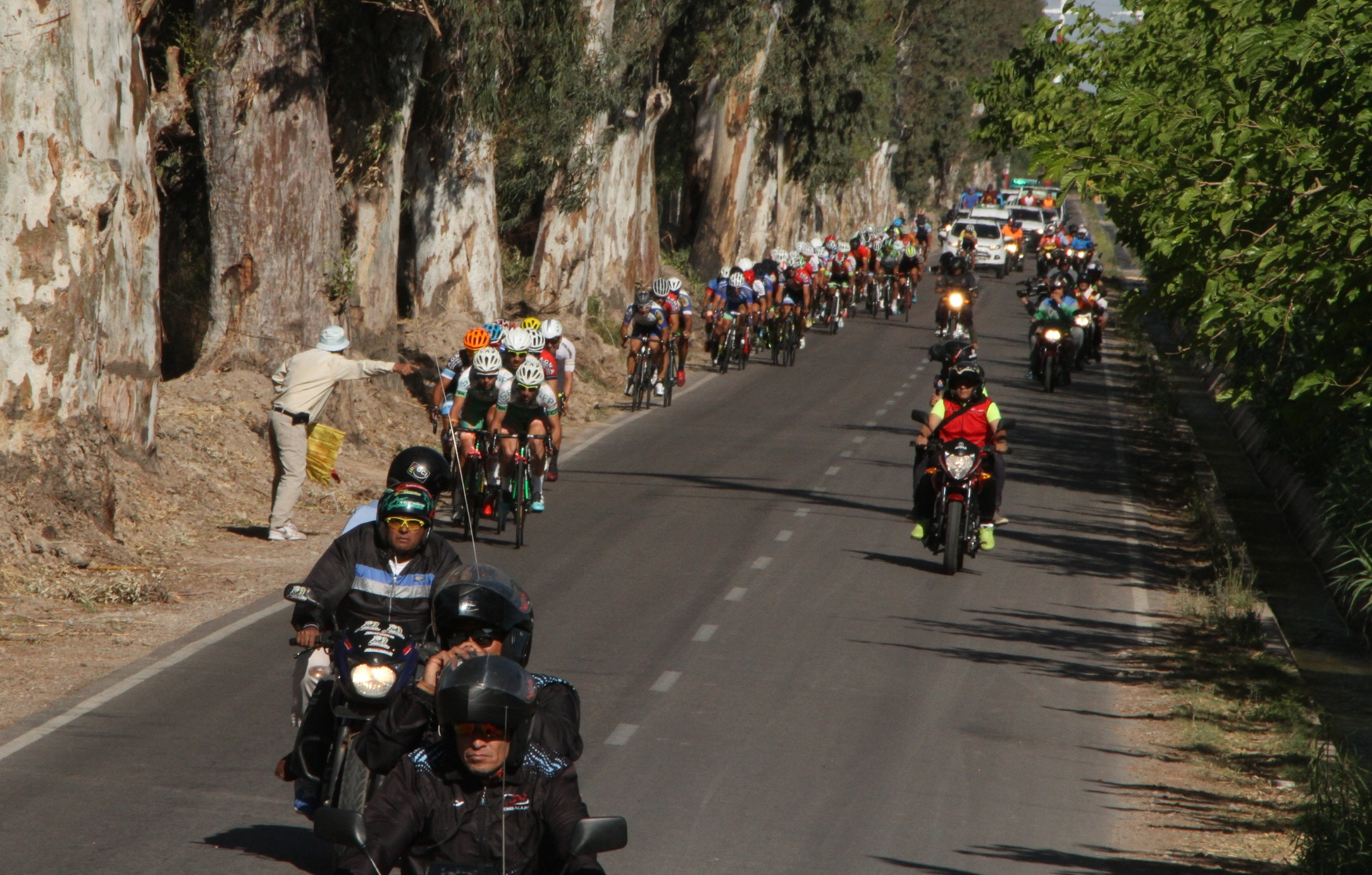 El pelotón viaja por el impecable pavimento de una calle pocitana, a su izquierda la acequia que transporta el agua bendita para las tierras cultivables. A la derecha centenarios aguaribays (popularmente pimientos) observan callados el paso de la caravana multicolor que rompe su serena existencia.