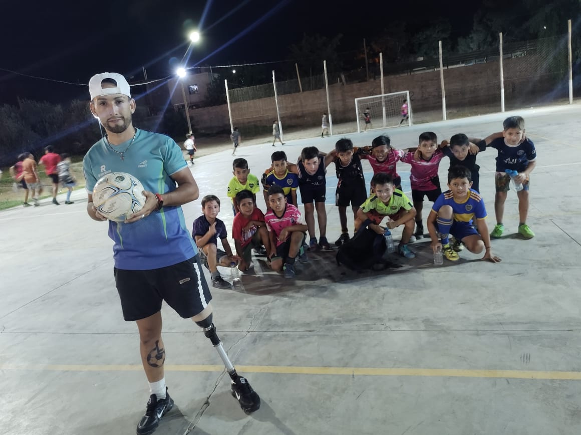 Su vida había vuelto a tomar un sentido y el deporte era su motor. Hizo básquetbol en silla de ruedas, levantamiento de pesas, boxeo, natación y hasta deportes extremos pero el fútbol seguía negándose. Hasta que un día y gracias a su psicóloga, conoció a José Coronado, otro sanjuanino que supo jugar en la Selección de amputados. "José me hizo entrar al equipo de fútbol. Fue en el año 2015. Viajé con mi papá a Entre Ríos y empecé a jugar en esa Liga, le dije a mi papá ´ya está´, no me falta la pierna solo me faltan las ganas de seguir. Sentí que estaba satisfecho", expresa. En ese primer año salió campeón y goleador. Al día de la fecha fue campeón nacional tres veces.