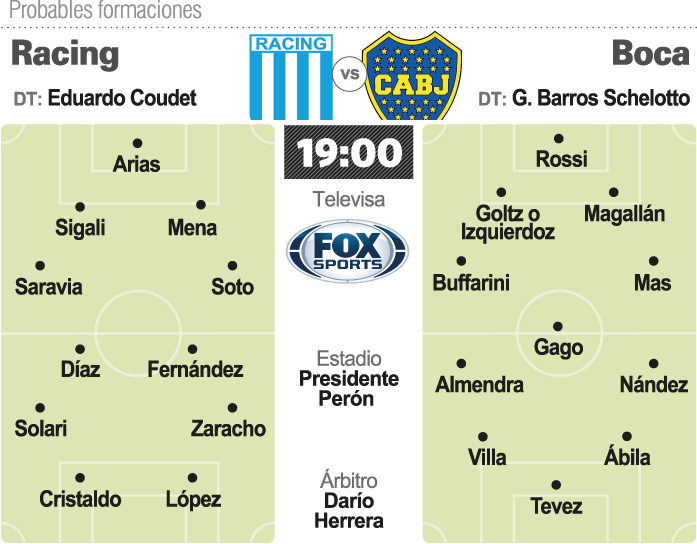 Por el lado de Boca, que consiguió la clasificación para las semifinales de la Libertadores, su entrenador Barros Schelotto todavía no tiene definido el equipo titular porque evaluará hasta último momento el estado físico de algunos jugadores.