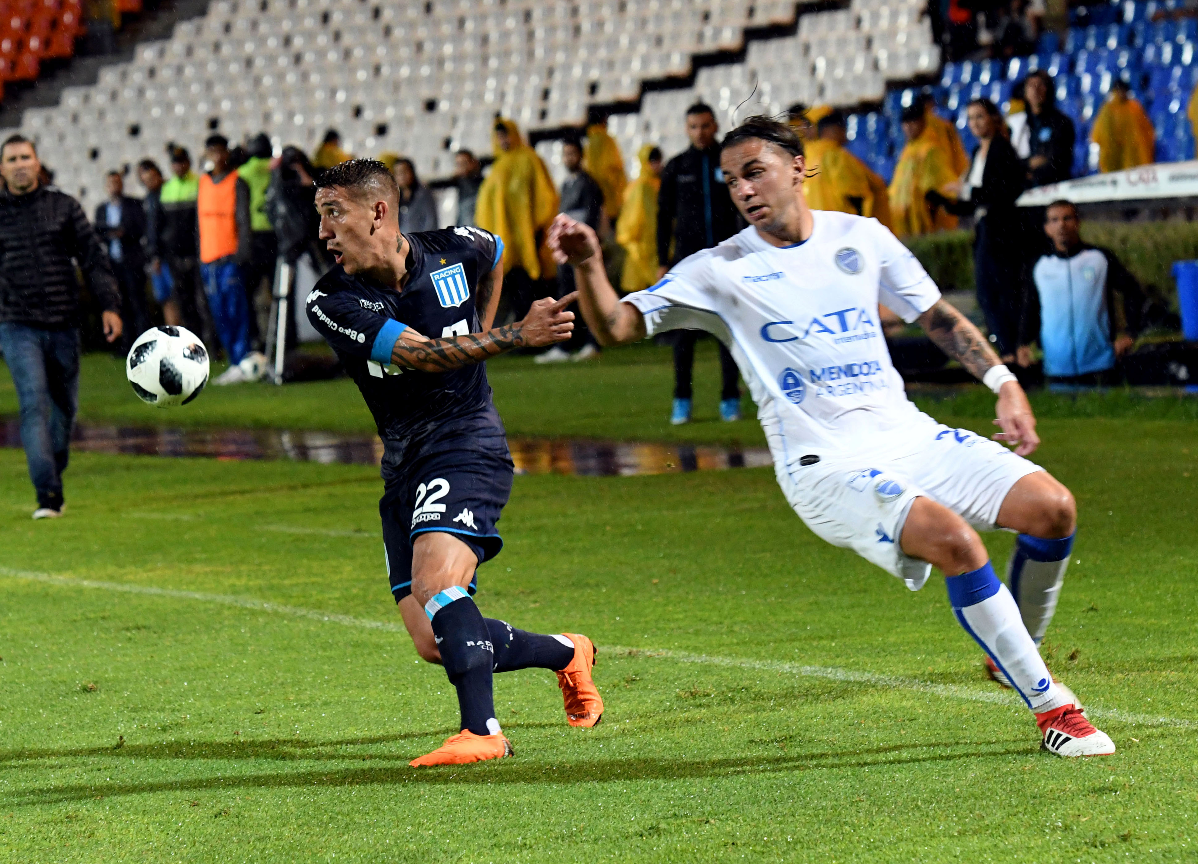 Racing se lo ganó en la última a Godoy Cruz y se acerca al lote de los de arriba. El prometedor espectáculo que protagonizaron Racing y Godoy Cruz en Mendoza comenzó con la dinámica que se esperaba. La intensa lluvia que cayó sobre el Malvinas Argentinasfue un condimento para que los veloces atacantes (de ambos equipos) se luzcan con movimientos rápidos que expusieron las limitaciones de las líneas defensivas.