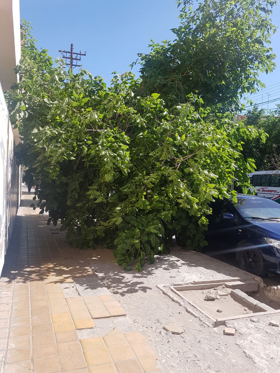 Un lector envió una imagen y el siguiente comentario: "Rama caída en avenida Rioja entre Mitre y Santa Fe hace horas y en el municipio duermen".