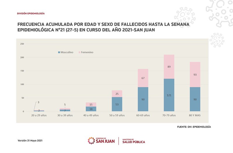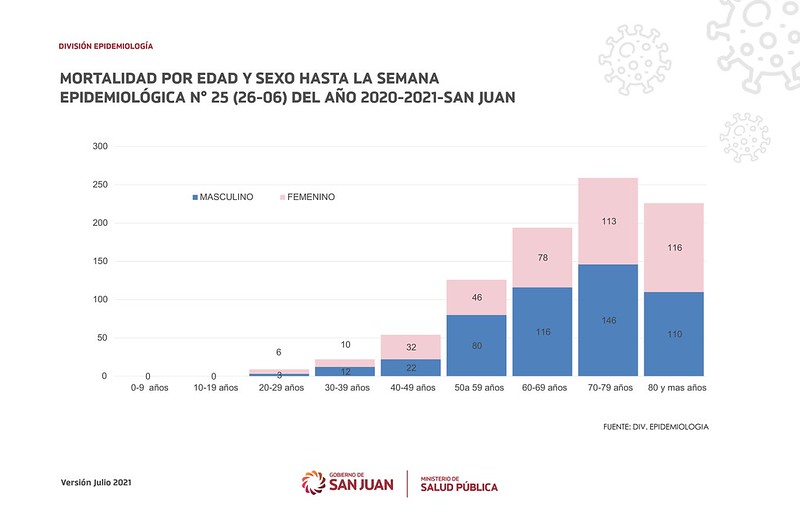 El grupo etario más vulnerable continúa siendo el de 70 a 79 años, y la concentración más importante es la de personas de 60 años en adelante. A comparación del mes anterior hubo 49 decesos por coronavirus en personas de 70 a 79 años, aunque la particularidad en este caso es que en segundo lugar se ubica, con 48 muertes, el de 50 a 59 años.