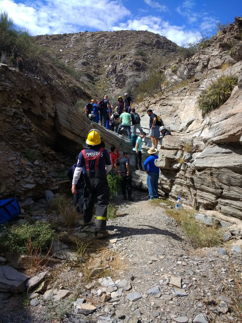 Según los efectivos que intervinieron en el rescate, un grupo de 10 personas, conocedoras del lugar, estaban realizando trekking cuando llegaron a un socavón inmenso que hay en la zona. Una mujer, de apellido Leiva, se acercó a mirar y se cayó de unos 7 metros.