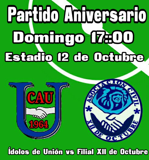 Por cumplirse el primer año, realizarán un festejo a través de un partido a beneficio entre Ídolos de Unión y Filial XII de octubre.
