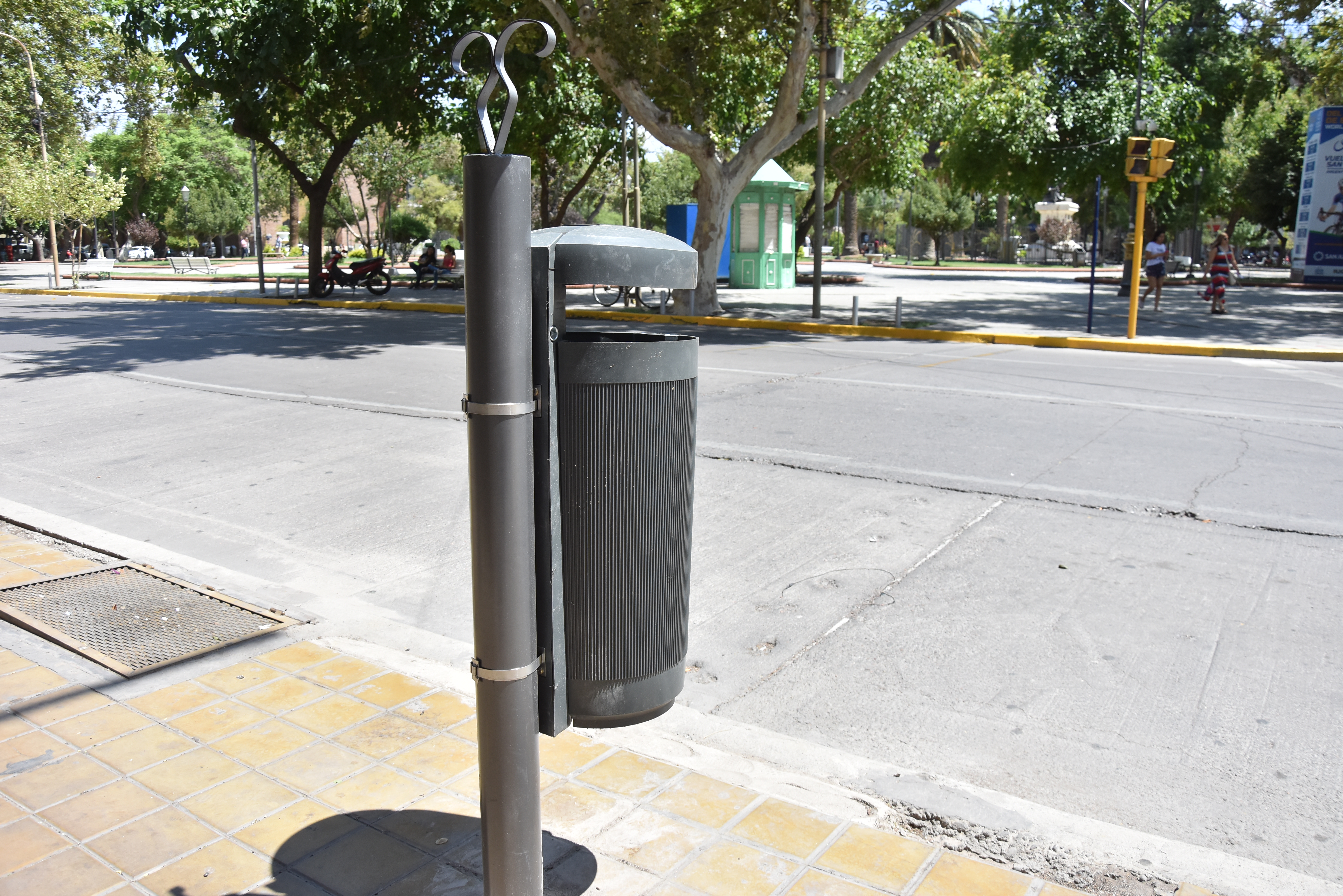 En las zonas aledañas, a la vez, se está instalando papeleros metálicos, iguales a los que se ha colocado en las plazas nuevas y las que han sido refaccionadas. En este caso ya se pusieron 150. Todos tienen agujeros en la base que permiten el drenaje de líquidos y además en ellos pueden colocar bolsas para contener los residuos.