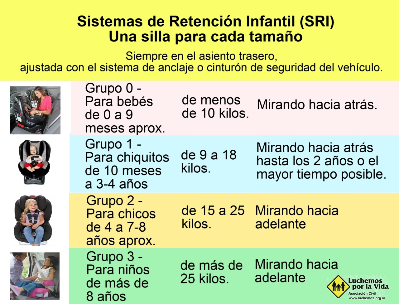 Por el momento, la ley nacional establece la edad (10 años) hasta la cual el niño debe viajar en el Sistema de Retención Infantil (SRI), sin precisar la relación de la edad con la estatura, peso y desarrollo del niño, que son fundamentales para elegir el asiento infantil adecuado para que cada niño viaje seguro.