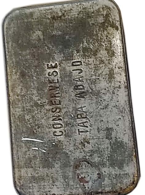 "Son latas de hojalata remachada. Hace 80 años ya había una remachadora en nuestro establecimiento. Está fechada con cuño, con fecha de 1941. Todo se hacía acá entre los años 35 y 45 del siglo pasado, elaborando crema de membrillo en lata hasta hoy en perfectas condiciones, con un barniz interior que nos hace pensar es epoxi fenólico oro. Las latas eran de 600 y 800 gramos de peso neto".