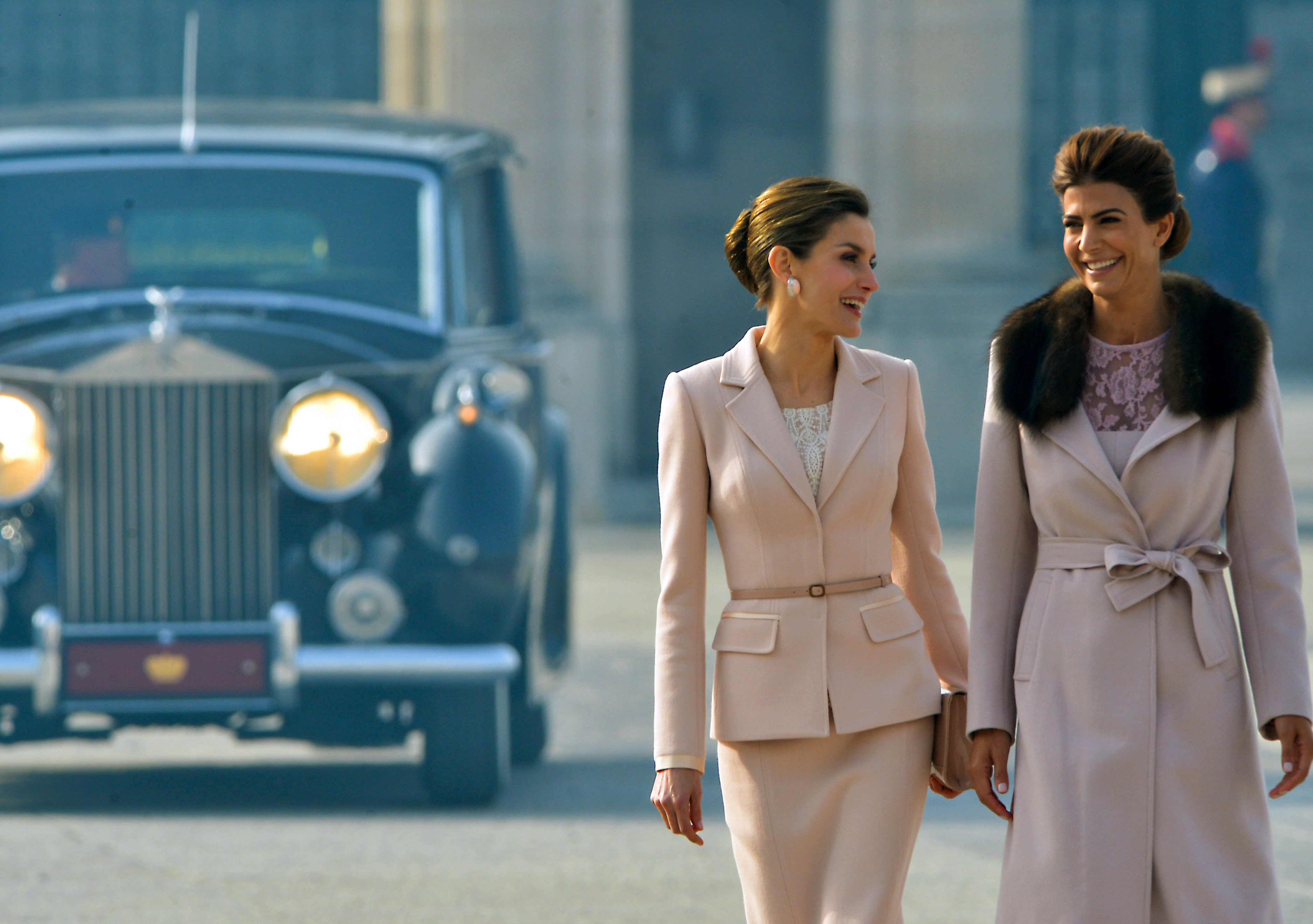 El mismo color. La Primera Dama y la reina de España coincidieron en el color del traje (rosa empolvado).