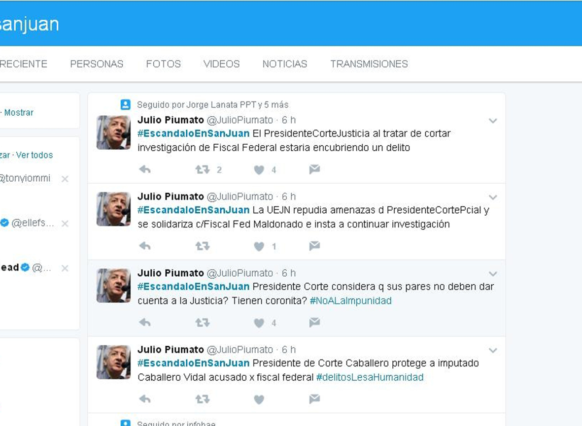 Así de contundente fue el repudio de Piumato, que conduce la Unión de Empleados Judiciales de la Nación (UEJN), quien a la vez respaldó a Maldonado al asegurar que “no se deje intimidar y que siga adelante con las investigaciones”. El sindicalista había cuestionado a Caballero a través de una serie de twits y después de eso atendió a DIARIO DE CUYO mientras se encontraba en Ginebra, en la reunión anual de la Organización Internacional del Trabajo. No es la primera crítica que recibió Caballero, ya que el fiscal mendocino Dante Vega, coordinador de la oficina de investigación contra delitos de lesa humanidad en Cuyo, había señalado que las declaraciones del titular de la Corte eran “intimidatorias” e “imprudentes”. No sólo eso, sino que además dijo que iba hablar con su colega Maldonado para hacer una presentación en la Cámara de Diputados de la provincia, que, según fuentes calificadas, será entre esta semana o la que viene (Ver recuadro).