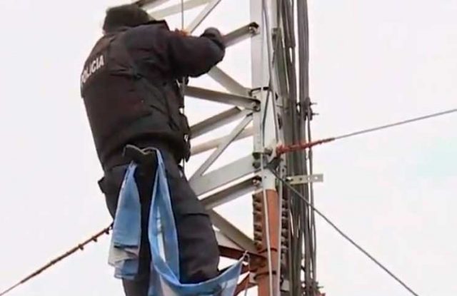 Un compañero se subió, lo abrazó y logró convencerlo para que se bajara. Sus familiares le habían suplicado que descendiera ante el riesgo de que sufriera un accidente.