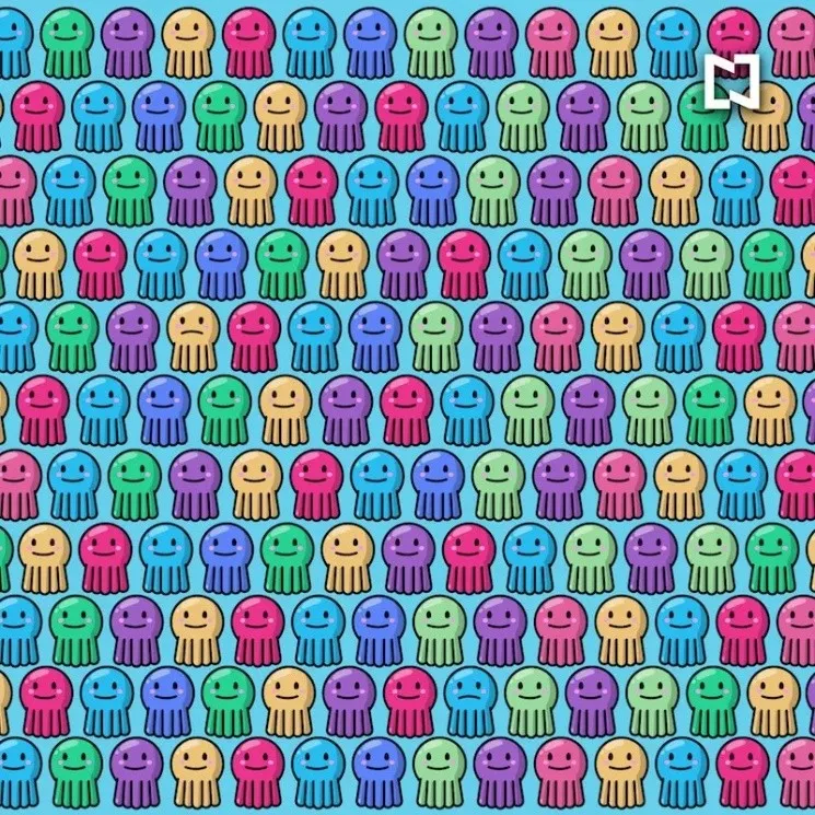 Este acertijo visual consta de ubicar el sitio en donde están camuflados los pulpos que están desanimados o tristes en la ilustración. A simple vista se puede ver que hay muchos de estos animales en forma de dibujos animados y poseen distintos colores.