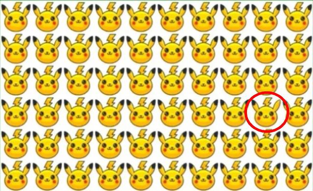 La prueba consiste en encontrar cuál es el pikachu que se diferencia del resto en la imagen. Y, como si esto ya no fuera suficientemente difícil, debe realizarse en menos de un minuto. Por este motivo, 9 de cada 10 personas que lo intentaron, fracasaron rotundamente.
