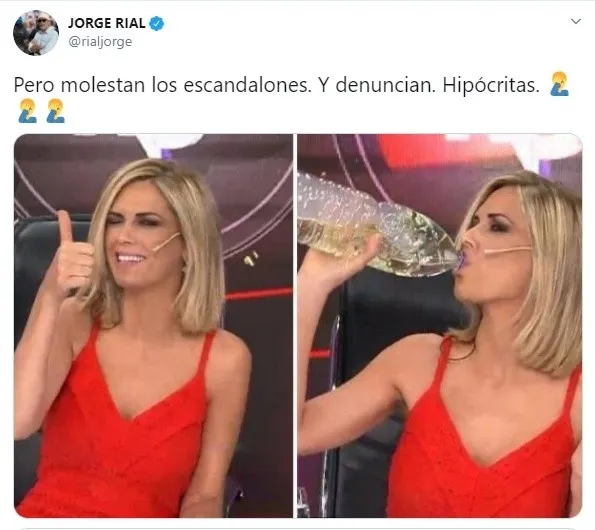 Tras el triste hecho, Jorge Rial se manifestó en sus redes y disparó sin piedad contra su eterna enemiga. Hace algunas semanas, la comunicadora se mostró en vivo de su programa "Nada Personal" mientras tomaba CDS desde el pico de una botella y despertó una fuerte polémica.