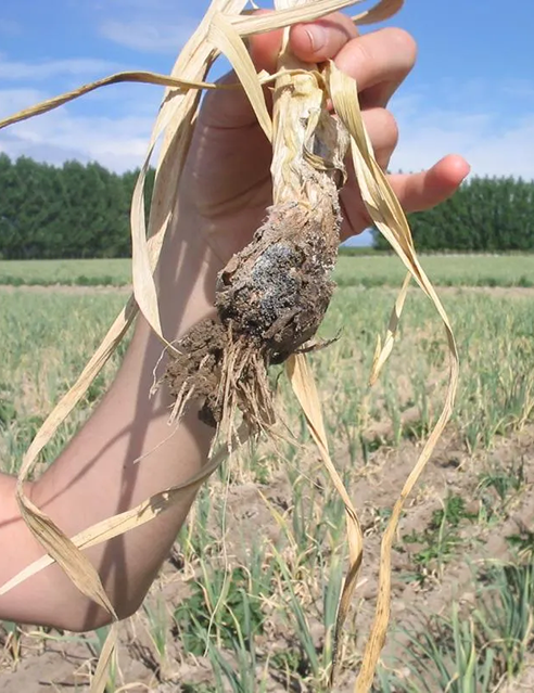 - Si es productor de semilla de cebolla, y recibe las cebollas de otro lugar, tome una muestra representativa de 100 bulbos al menos y solicite análisis de patología para podredumbre blanca, antes de plantar los bulbos.
