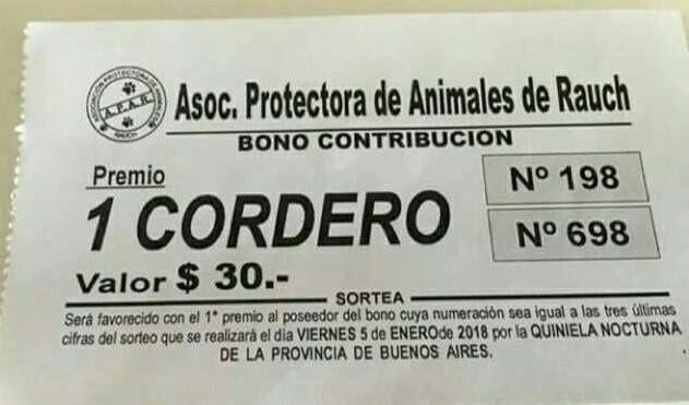 En un bono contribución de la Asociación Protectora de Animales anuncian un sorteo que se realizará este viernes para recaudar fondos. Pero el primer premio es un cordero, lo que desató la confusión.