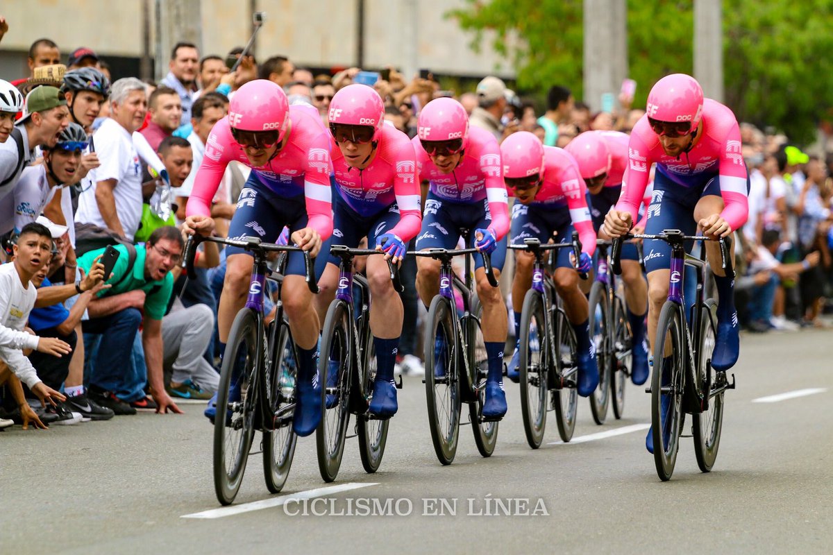 El equipo EF Education First, capitaneado por Rigoberto Urán, se adjudicó este martes la contrarreloj individual de 14 kilómetros con la se inició el Tour Colombia, que reúne a figuras del lote mundial, entre ellos el británico Chris Froome.