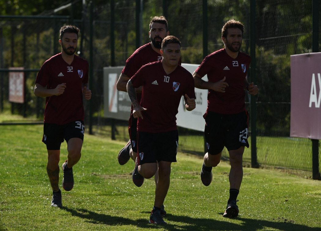 Así, el equipo que eliminó a Boca en Libertadores podría repetirse con: Franco Armani; Gonzalo Montiel, Lucas Martínez Quarta, Javier Pinola y Milton Casco; Nicolás de la Cruz, Enzo Pérez, Exequiel Palacios e Ignacio Fernández; Rafael Borré y Matías Suárez.