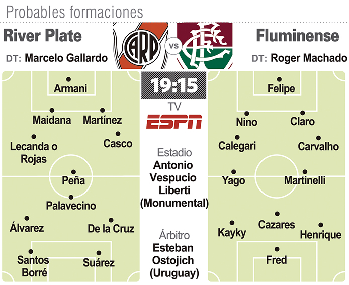 River celebrará hoy sus 120 años de vida con un trascendental desafío deportivo por delante: asegurar su clasificación a octavos de final en la Copa Libertadores frente a Fluminense de Brasil (19.15 horas, por ESPN) en la última fecha del Grupo D. Será en el mismo horario en el que se enfrentarán los colombianos Independiente Santa Fe y Junior, que completan la zona.