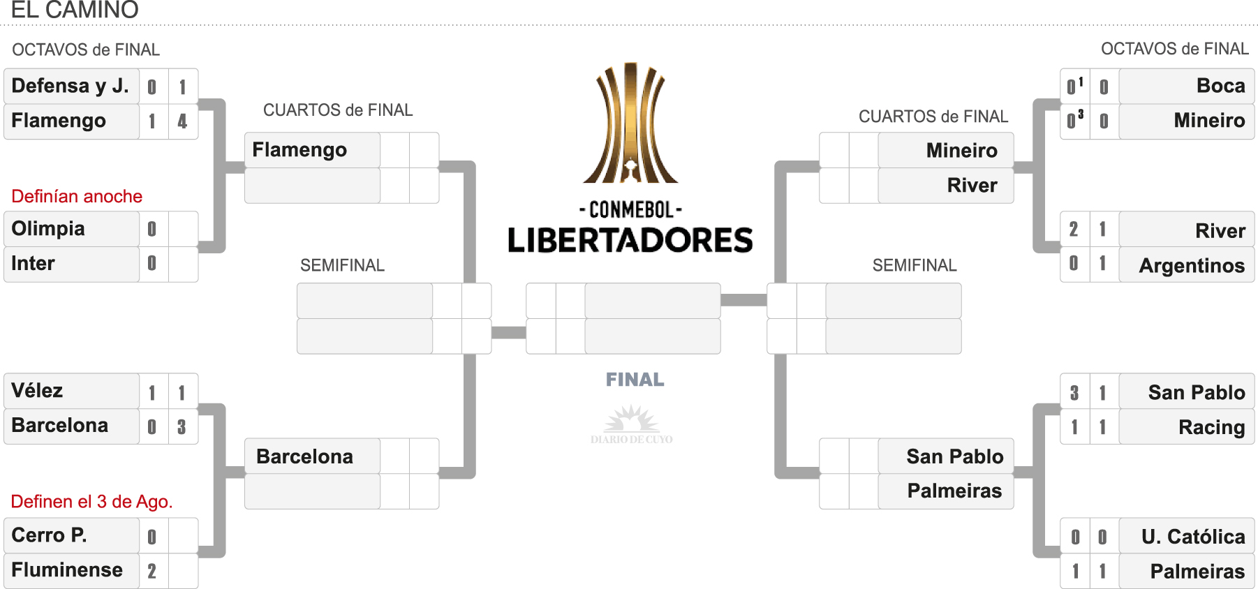 En el desdichado contexto del VAR ‘Frankenstein‘ que arrasa al fútbol sudamericano y que inobjetablemente ha dejado a Boca en el camino, River quedó como único representante argentino en la Copa Libertadores gracias a su victoria por 2-0 ante Argentinos Juniors en una inspirada noche de Braian Romero. Las llaves de cuartos de final quedarán completadas el martes 3 de agosto próximo con el juego entre Fluminense y Cerro Porteño: los cariocas llevan una ventaja de 2-0 después de haber pasado por la capital paraguaya con la gracia de una insólita gravitación del VAR, que suprimió una genuina anotación de Mauro Boselli. Hasta ahora la presencia de equipos brasileños en cuartos es mayoritaria (ver infografía).