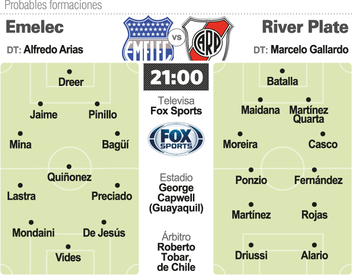 River visitará hoy a Emelec, de Ecuador (21 horas, Fox Sports), e intentará sumar su tercera victoria en la misma cantidad de partidos en la Copa Libertadores.