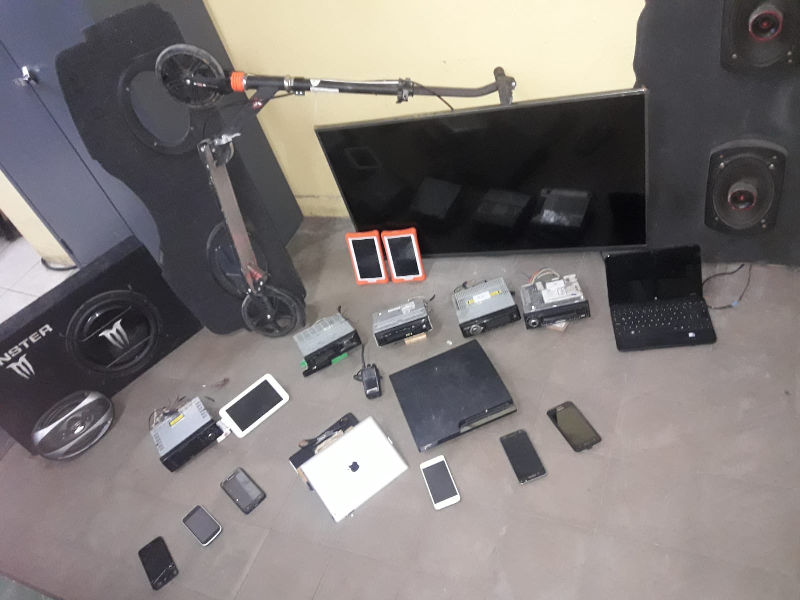 Luego de una investigación, personal de Robos y Hurtos realizó allanamientos en domicilios de la Villa Monaffo, Pocito y en Capital, donde secuestraron dos teléfonos celulares, una réplica de un arma 9 milímetros y prendas de vestir, como así también detuvieron a un sujeto identificado como Joaquín Fernández, de 19 años. Además, dos menores de edad quedaron vinculados a la causa.