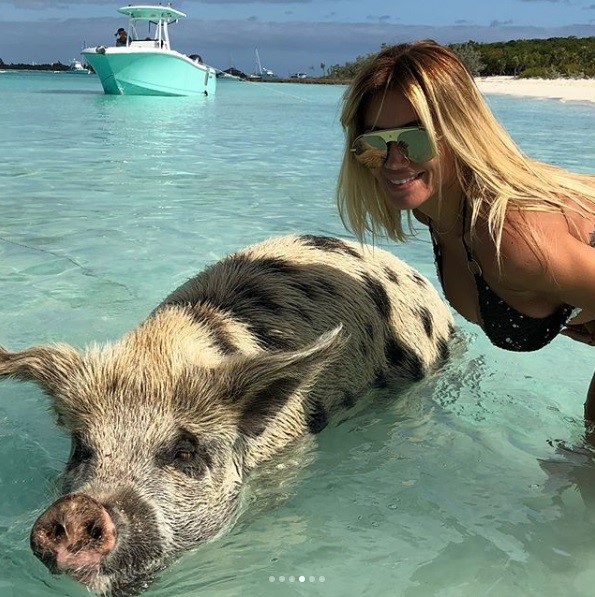 No hace falta describir mucho más. Básicamente se trata de Ciardone rodeada de chanchos en una playa paradisíaca de las Bahamas, en pleno Caribe.