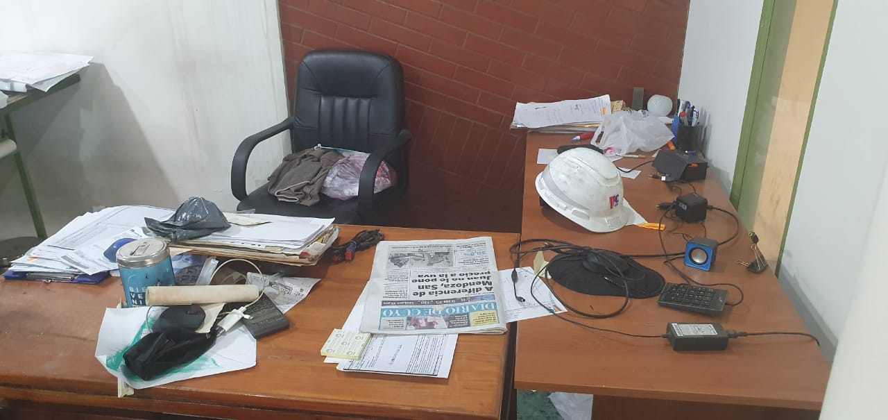 Una vez en el interior, revolvieron y desordenaron absolutamente todo, hasta que decidieron robar 3 notebooks (2 marca Lenovo y la otra, Dell), dos monitores, una pava eléctrica y una cafetera Nescafé.
