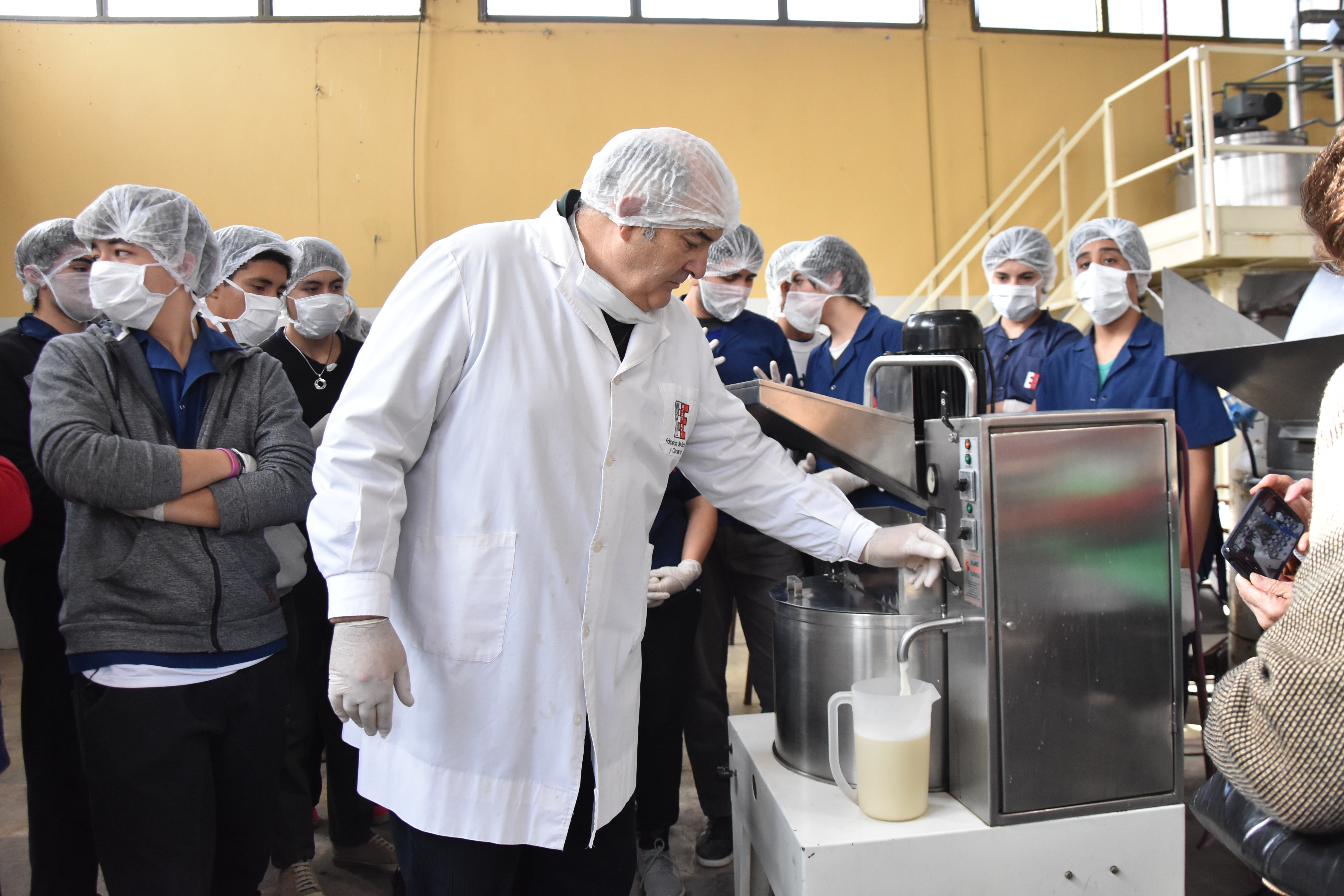 El responsable del sector industrial, enólogo Walter Garroti, explicó que "la máquina consta de un pequeño molino, con un tamiz para tamizar la okara de la soja o porotos cocidos y triturados y separarlos de la leche. Tiene un recipiente circular con fuente de calefacción propia para calentar la leche que se va procesando".