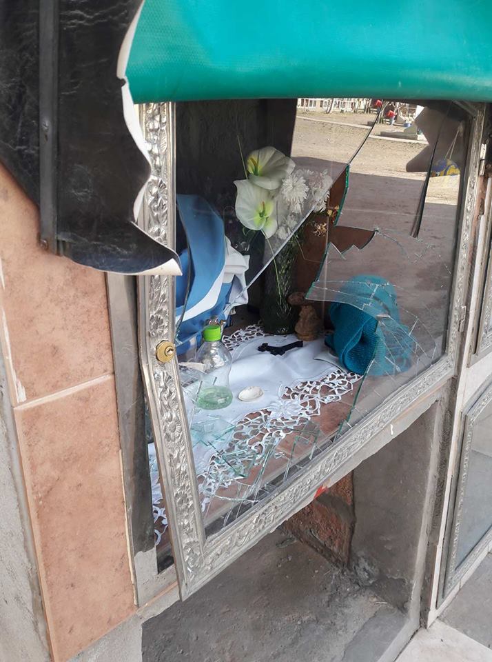 La lectora Cecilia Castro envió imágenes y el siguiente comentario: "Esto es eL cementerio de Albardón donde le viven haciendo daños a los nichos y robándose cosas. Éste es de mi papá que cada dos meses lo tenemos que arreglar. Además hay una mugre terrible en todo el cementerio".