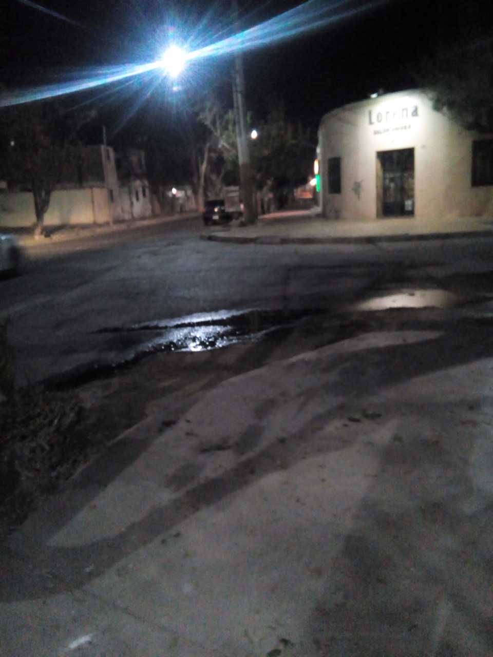 Un lector envió una imagen y el siguiente comentario: "Esto pasa todos los días en calle Brasil antes de llegar a Aberastain, han colocado chepica en un costado de la calle que es público y riegan rompiendo el pavimento y el agua baja por Aberastain llegando a calle Belgrano, de Capital. Estaría bueno que les colocaran medidores de agua, asi terminan estas practicas de enlagunar la zona".