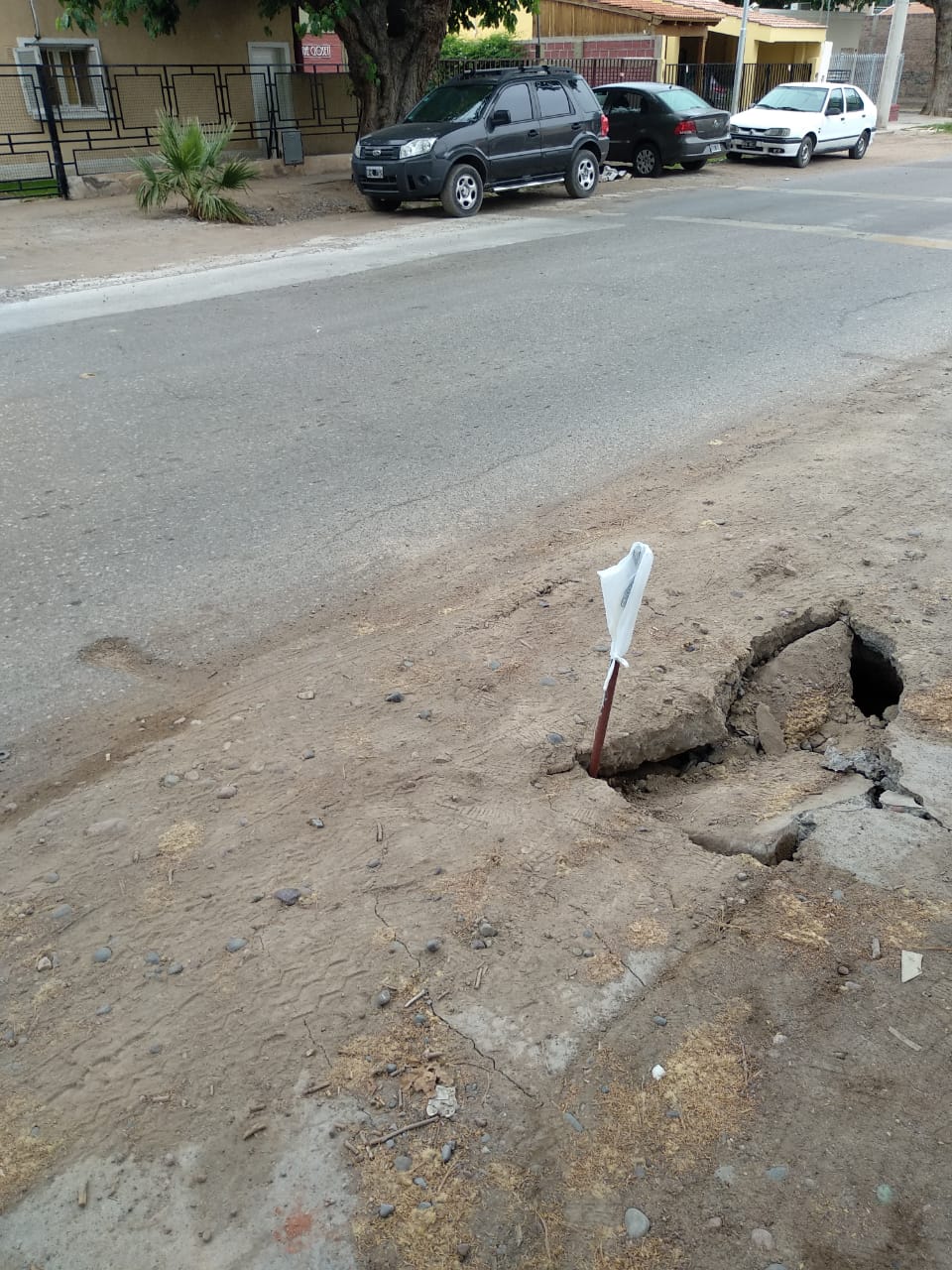 Un lector envió una imagen y el siguiente comentario: "Esto es en Sargengo Cabral 1728. Hace 1 mes se rompió un caño principal de agua y las maquinas dañaron la banquina de enfrente. Hoy se formó un pozo peligroso. Se espera la reparación de OSSE desde el 20 de septiembre".