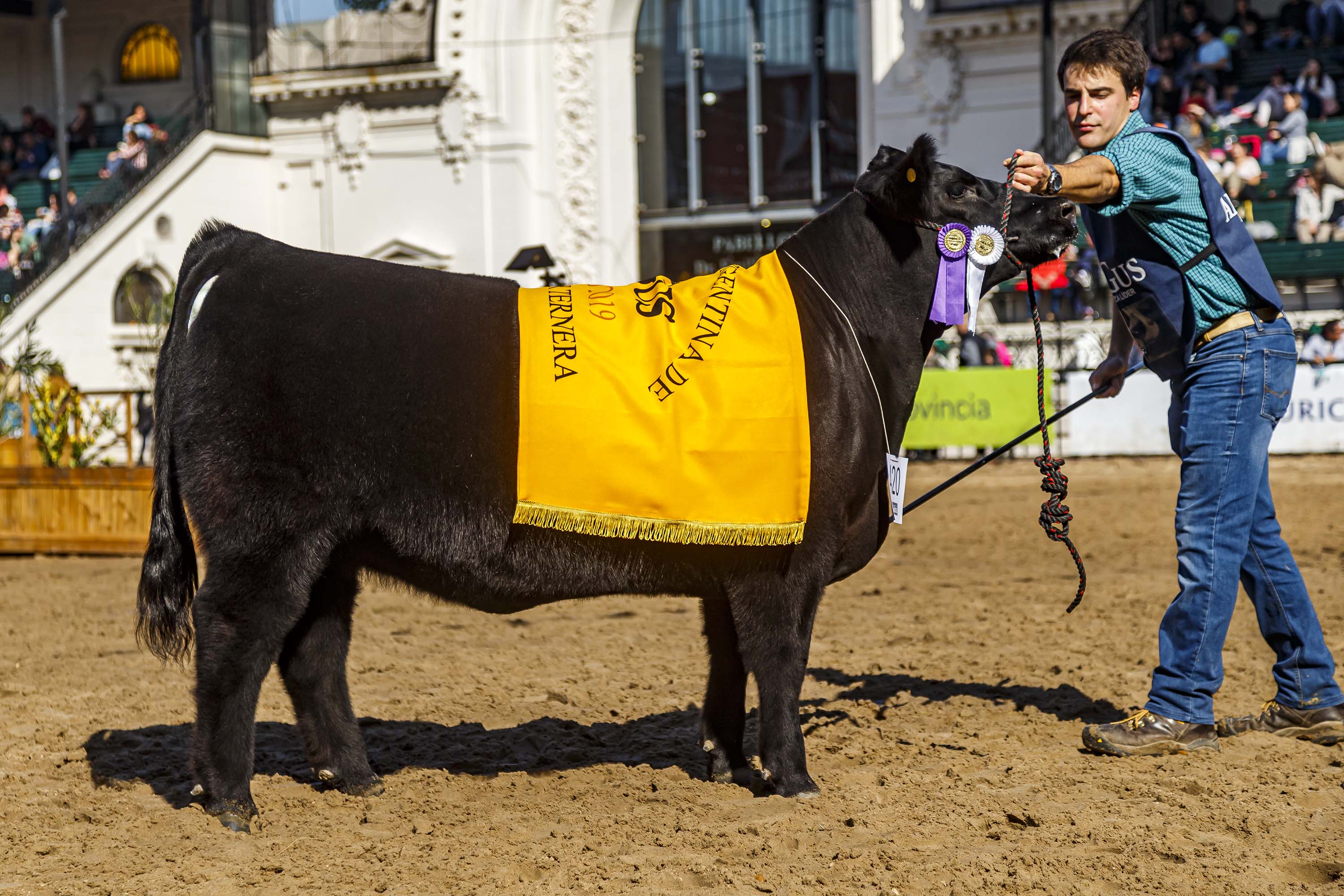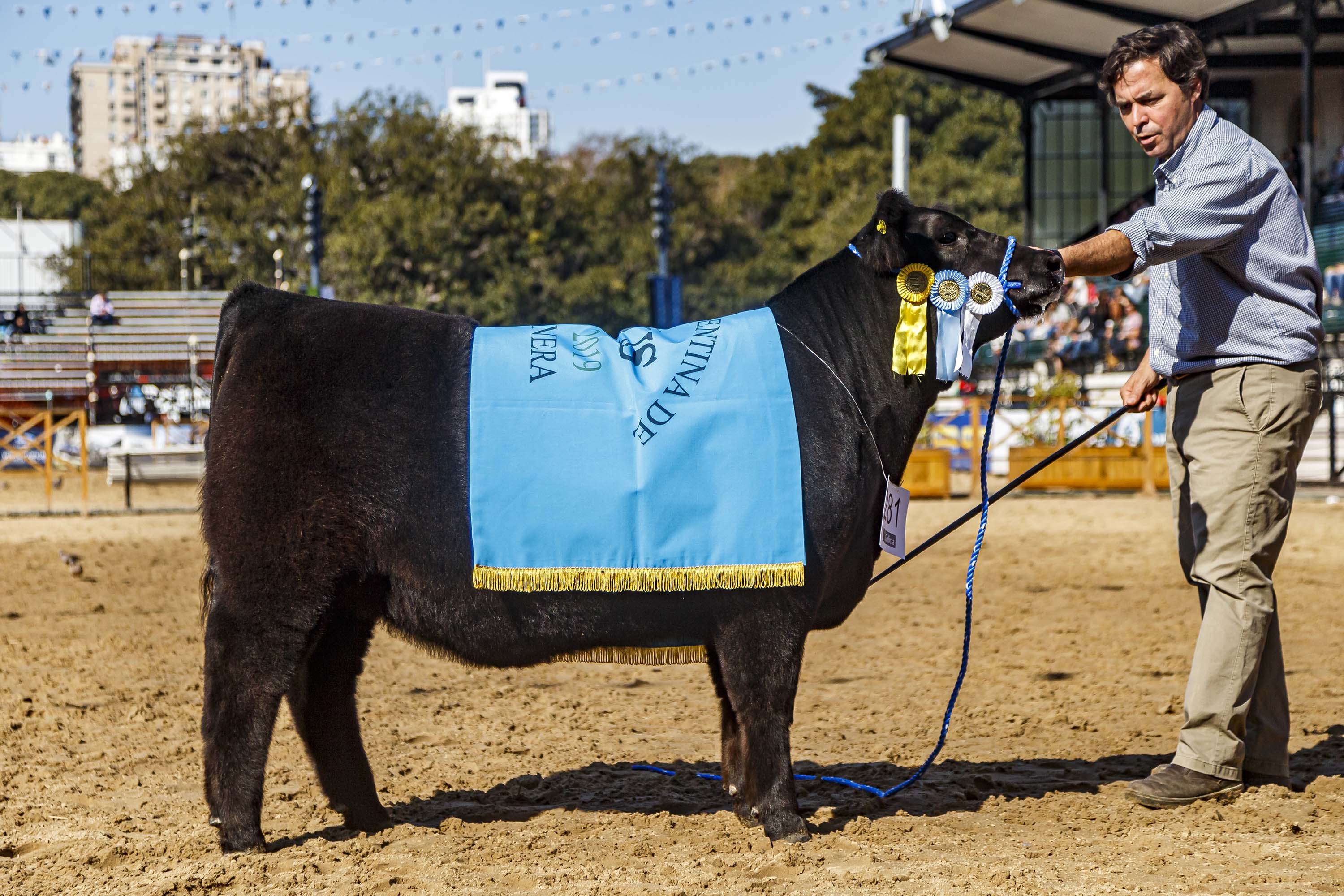 En un día a pleno sol, la raza Angus comenzó sus actividades en la Pista Central de Palermo con la elección de los mejores terneros de la Exposición Rural 2019. El jurado fue el Dr. Néstor Chiaravalli y sus secretarios Matías Falco y Marcelo Muzio.