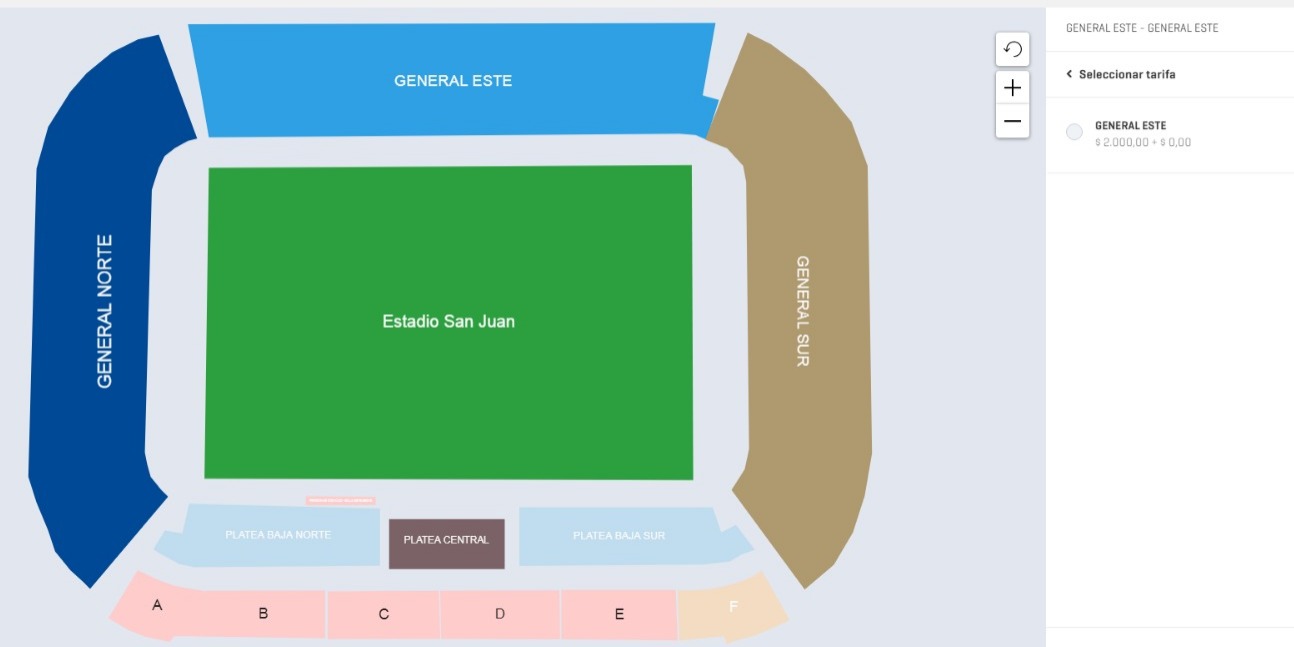Las entradas disponibles con las de ubicación General Norte, este y Sur, todas a un valor de 2 mil pesos.