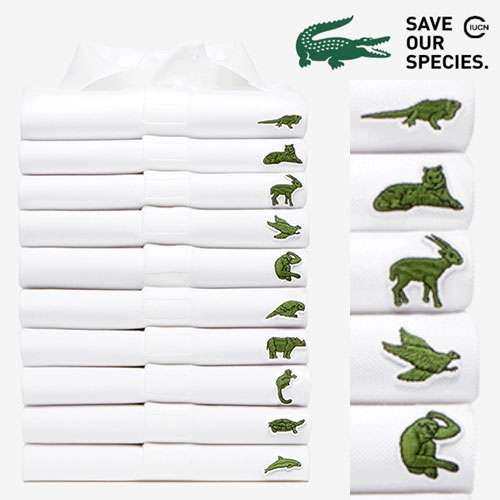 Lacoste en un gesto tan efímero como fructuoso, cambió su legendario logo de cocodrilo por las imagenes de especies en vías de extinción.