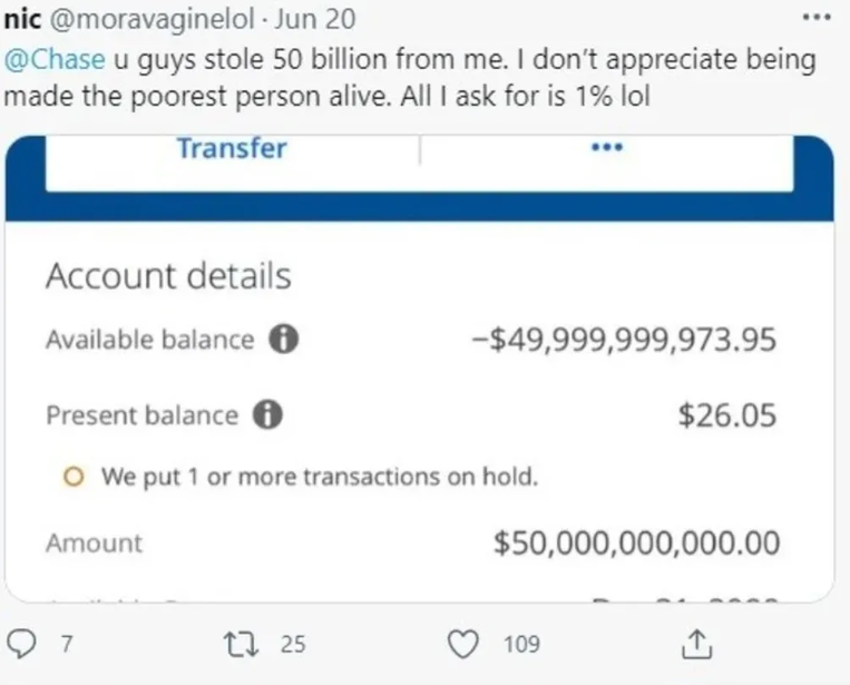 Sin embargo, su vida dio un giro a la mañana siguiente, al revisar su cuenta bancaria y advertir que tenía una deuda por casi 50 mil millones de dólares.