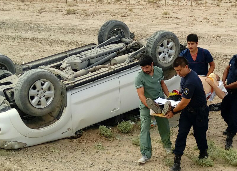 El hecho ocurrió alrededor de las 15 en el kilómetro 512 de la Ruta Nacional 20, cerca de El Encón, departamento 25 de Mayo. Policías de la seccional 32da de Las Casuarinas investigaban porqué razón el conductor terminó a los tumbos a un costado de la ruta (foto diario Huarpe).