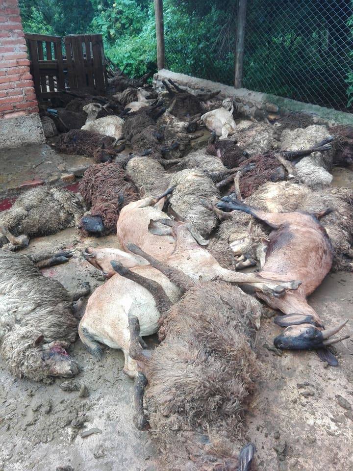 El dueño de la finca explicó que las cabras habían sido degolladas y otras murieron aplastadas, ya que al no poder huir se amontonaron contra las paredes del corral y fueron abatidas por el peso de cientos de los asustados animales.