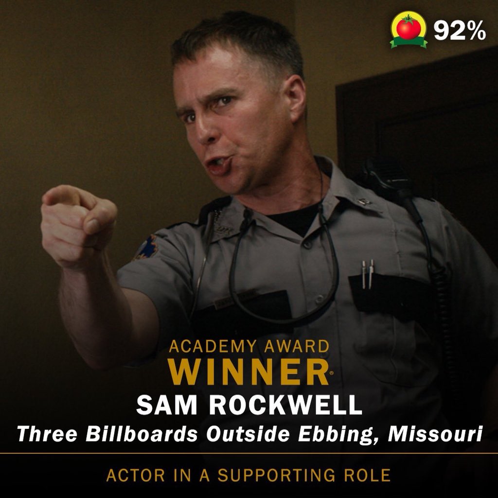 Por su papel en Tres anuncios por un crimen, Rockwell obtuvo el premio. Curiosamente, derrotó a su compañero de filme, Woody Harrelson, quien interpreta al comisario del pueblo ficticio de Ebbing.