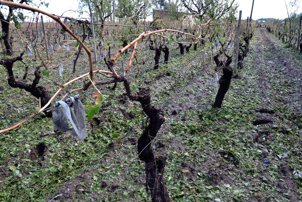 Los agricultores sancarlinos parecen ser el blanco de las inclemencias climáticas de un tiempo a esta parte. Las tormentas de granizo, que azotaron al departamento la semana pasada, afectaron a más de 2500 hectáreas. Pero con los daños acumulados de las heladas tardías de noviembre, muchas fincas presentan pérdidas de entre el 80 y 100%.