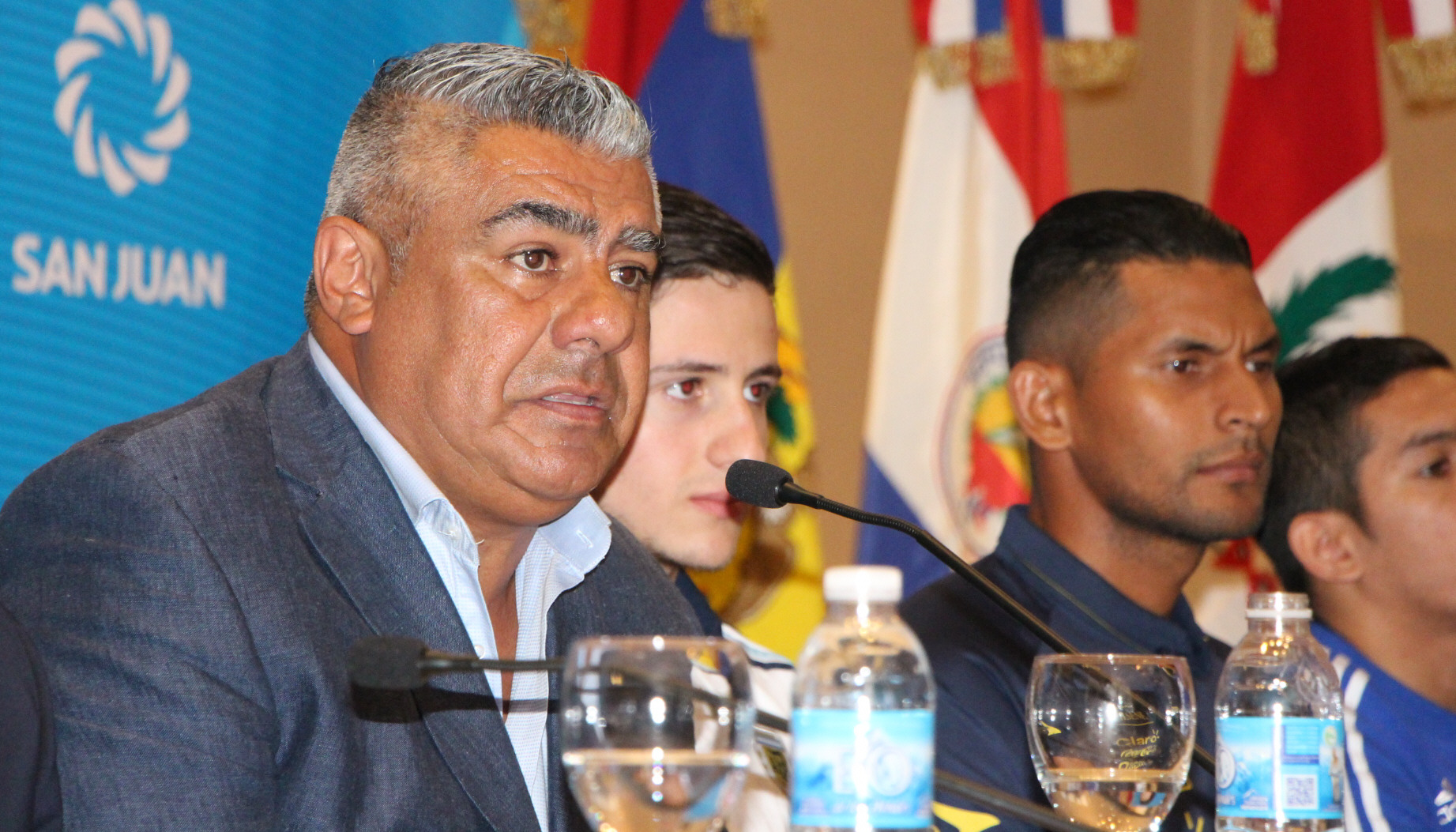 Feliz. Claudio Tapia volvió a San Juan para presidir el lanzamiento de la Copa América.