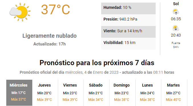 Según los pronósticos del organismo también se esperan 40 grados de máxima el primer día del fin de semana en la localidad salteña de Rivadavia y la santiagueña de Monte Quemado.