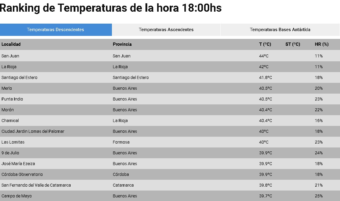Todo el país atraviesa un enero infernal y San Juan se destaca siempre con temperaturas altas. Este martes no fue la excepción y a las 18, con un cielo cubierto, el termómetro marcó 44 grados y posicionó a la provincia como la más caliente del país.