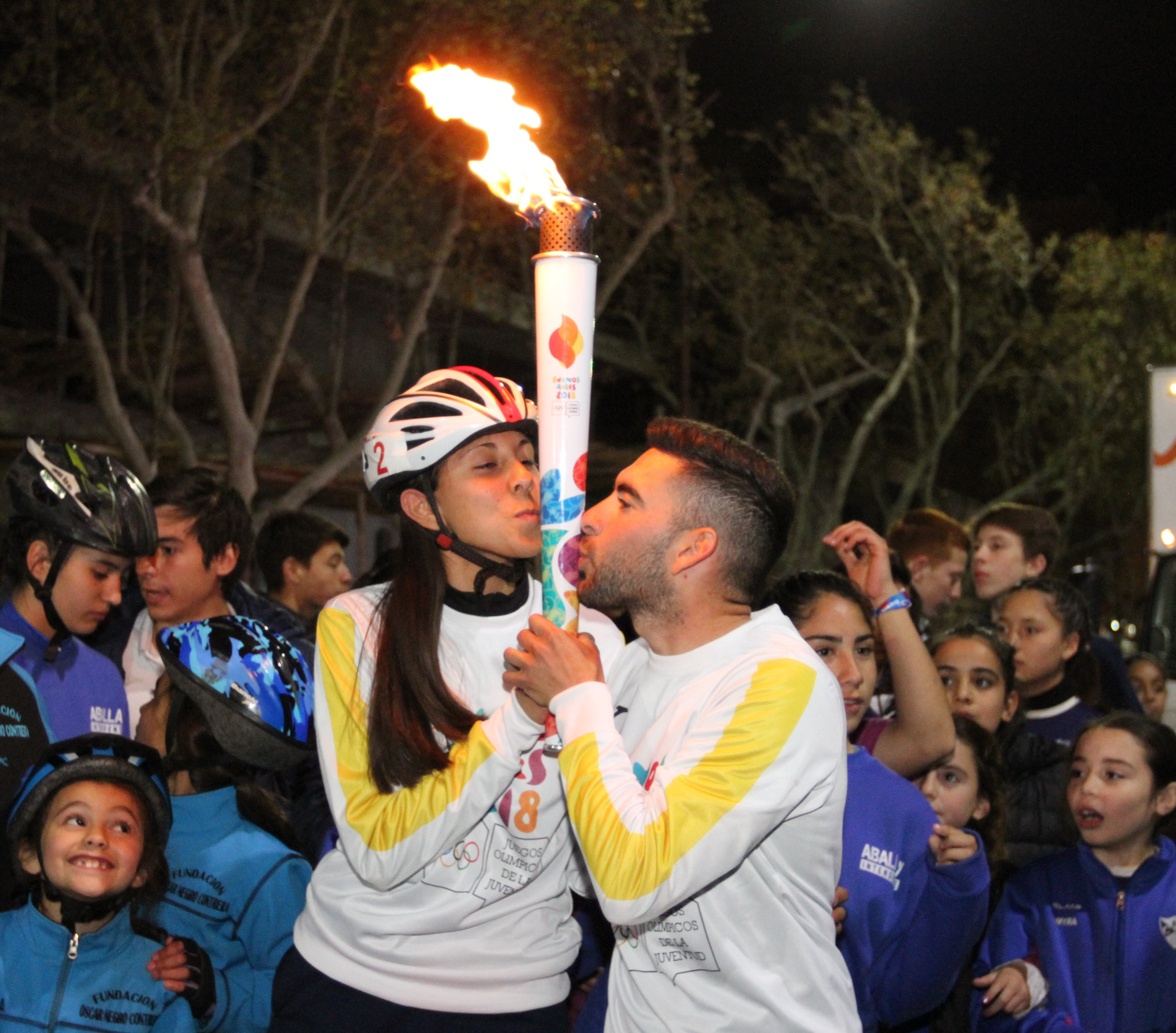 La patinadora Fernanda Illanes y el ciclista Duilio Ramos hacen el traspaso de la antorcha. La pocitana a sus 16 años participará en los JJ.OO de Buenos Aires. Ramos, en tanto, es campeón argentino Sub-23.