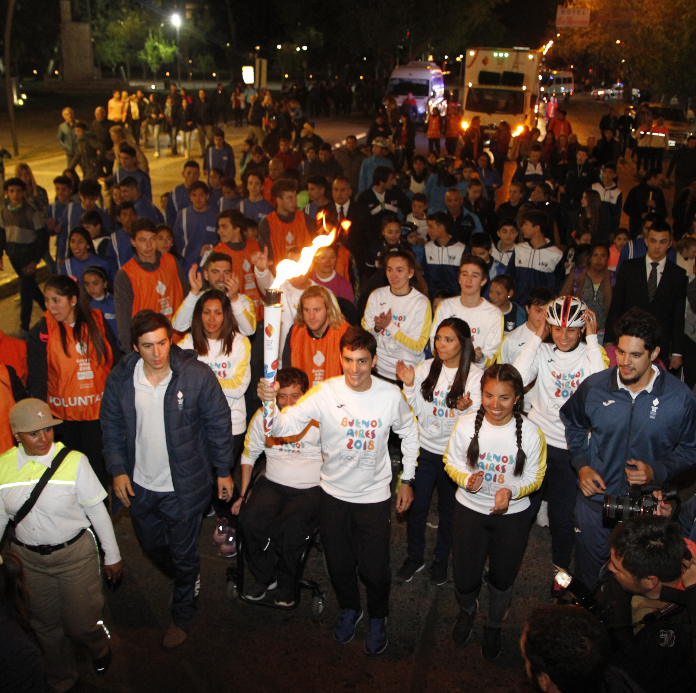 El gobernador Sergio Uñac, el secretario de Deportes Jorge Chica y Gerardo Werthein, presidente del COA (Comité Olímpico Argentino), se encargaron de encender la antorcha sobre Avenida Central a metros de Plaza 25. El exhockista Roberto Roldán, quien consiguió el oro en los Juegos de Barcelona, fue quien abrió paso.