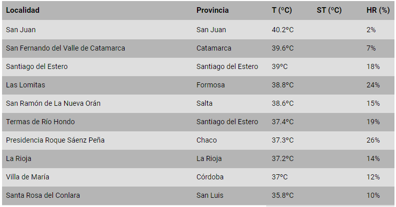 El termómetro trepó mucho más de lo previsto en San Juan por el viento Zonda y la capital se transformó en la ciudad más calurosa del país, superando la barrera de los 40 grados a las 16. Según el registro de las 17, con 40,2 grados, lidera el ranking nacional según el Servicio Meteorológico Nacional (SMN). En segundo lugar, con 39,6° se ubica San Fernando del Valle de Catamarca.