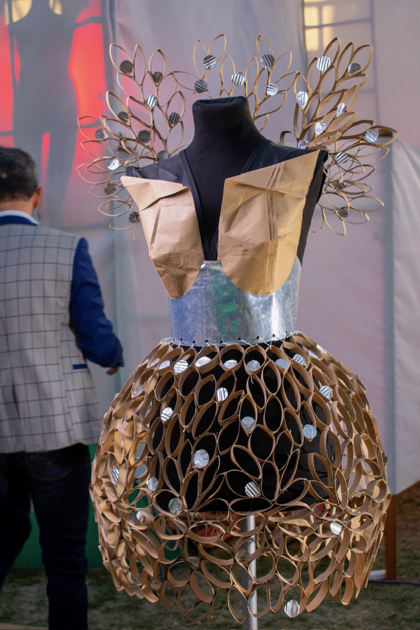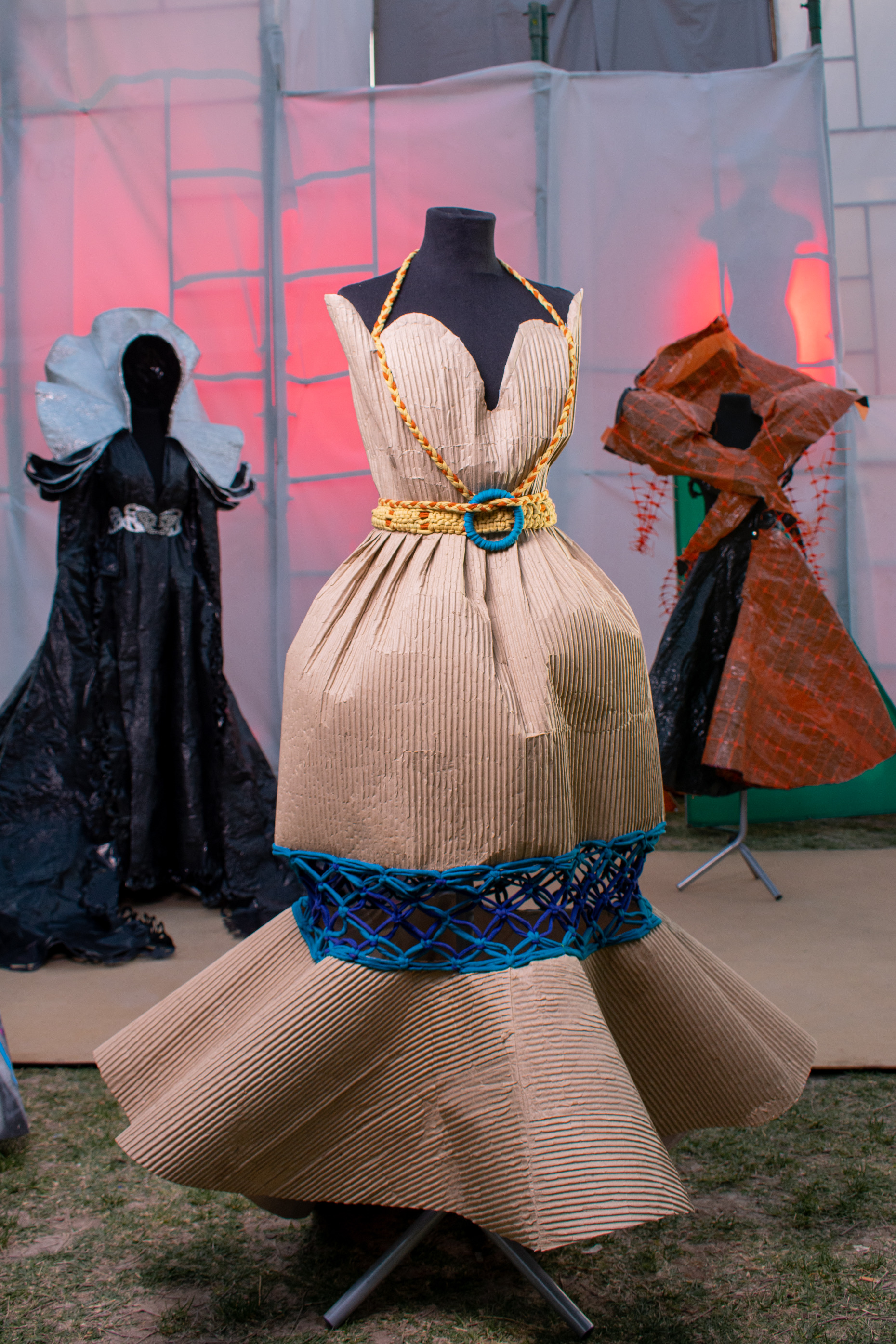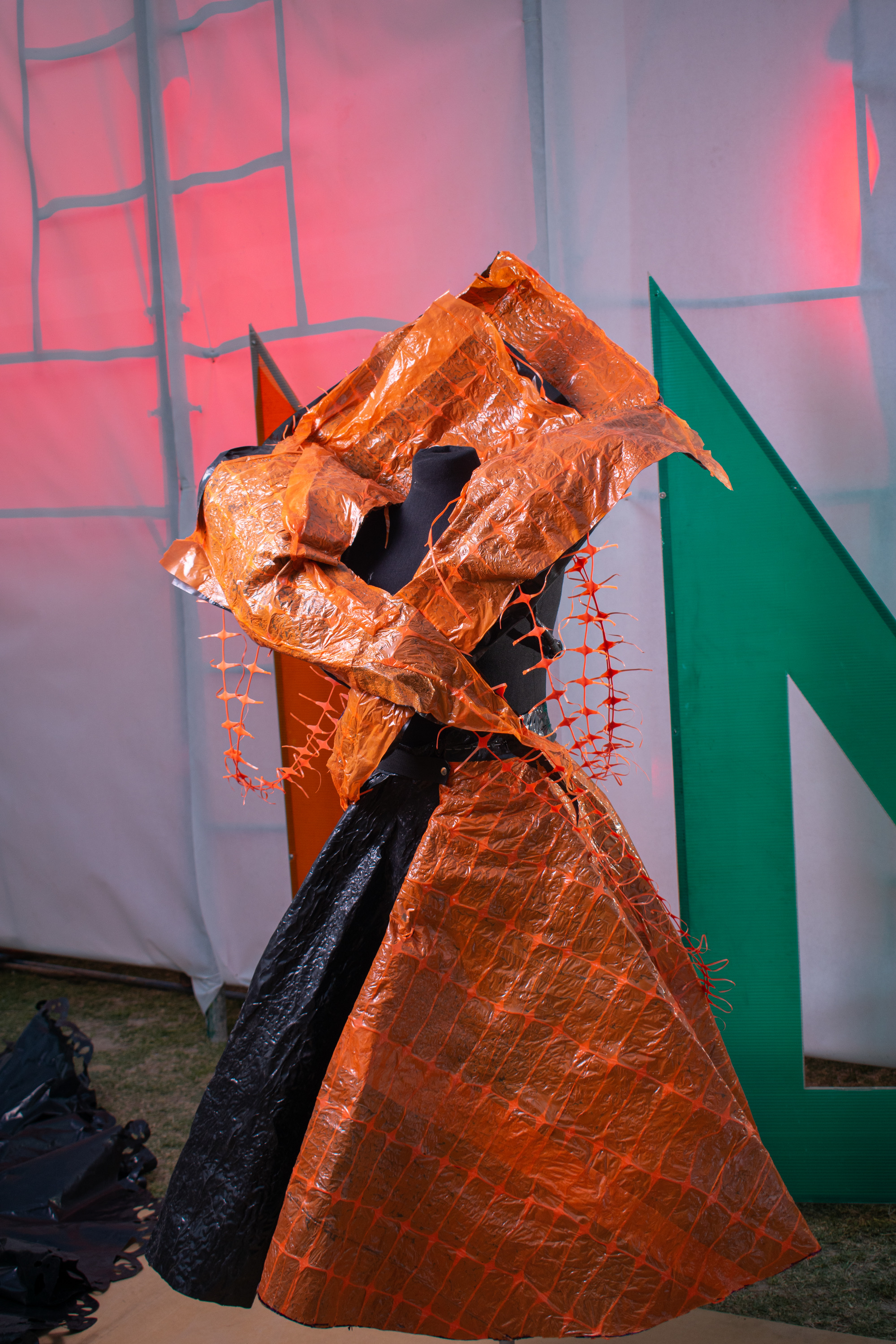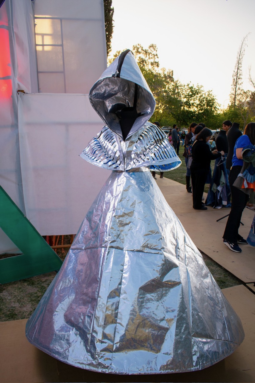 "Daniela Ortega cuenta además, que es la presidenta de la "Asociación Civil Estilo San Juan" junto a Francisco Zito, esta asociación agrupa a todos los diseñadores y artesanos dedicados a la producción y generación de moda de la provincia de San Juan. Esto cuenta con una personería jurídica para poder dar capacitaciones desde nosotros o poder articular con otros profesionales para que vengan a dar sus experiencias. El único objetivo es buscar profesionalizar, tener conocimientos y poder emprender. Junto a mi coequiper Francisco decidimos traer la sustentabilidad a la asociación empezar a trabajar con conciencia y con criterio. Este eje sustentable al desarrollar la diplomatura lo traslade en todos sus tipos, por ejemplo desde armar un molde, desde el desecho textil, la moda circular, etc. Luego apareció la invitación al evento del aniversario de la facultad para participar. Así es como entre los dos, se da origen a una revelación artística, "que si no cuidamos el medio ambiente, si no cuidamos lo que estamos usando nos vamos a vestir con esos desechos". La idea fue presentada a los alumnos que entusiasmados salieron en búsqueda de los materiales, por ejemplo las bolsas de alimento para perros, la malla plástica de construcción, bolsas de residuo, cartones corrugados desechados, latitas de gaseosas o cervezas, entre otros. Hacer la "Colección 2050 fue una transición hermosa, una experiencia super enriquecedora, ya que toda la muestra está hecha con productos reciclados. Un logro de parte de los alumnos ya que venían trabajando con conocimientos e investigaciones todos los elementos visuales de las composiciones, las siluetas, las formas, es decir un proceso de estudio bastante grande que había que volcarlo al diseño. Todo tiene un por qué y está fundamentado en cómo se uso y las formas y siluetas que lograron.