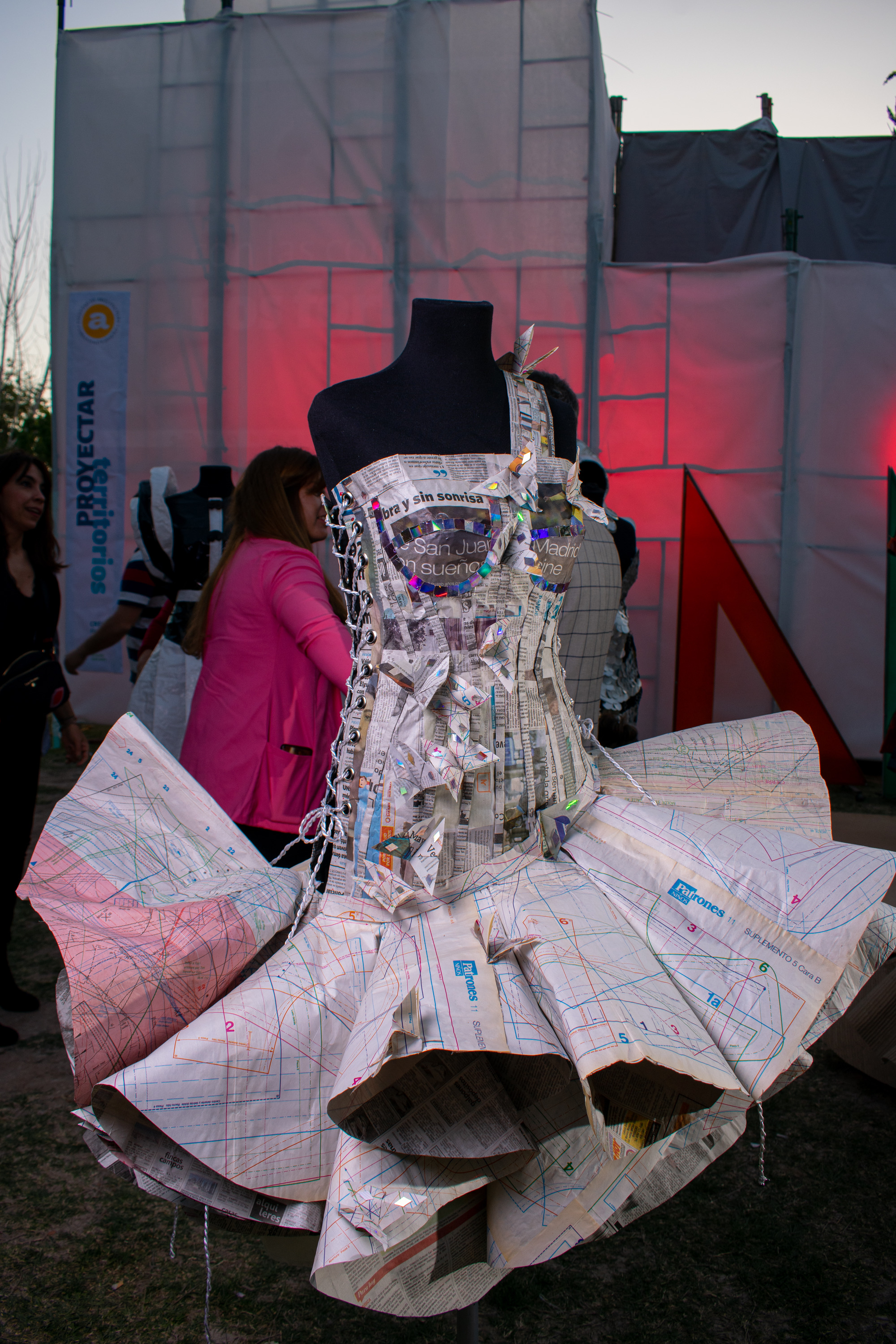 La muestra tuvo lugar en el evento de los 50 años de la UNSJ y los 40 años de la FAUD. Fue una linda convocatoria y todo un rectorado asombrado de la fabricación con materiales no convencionales.