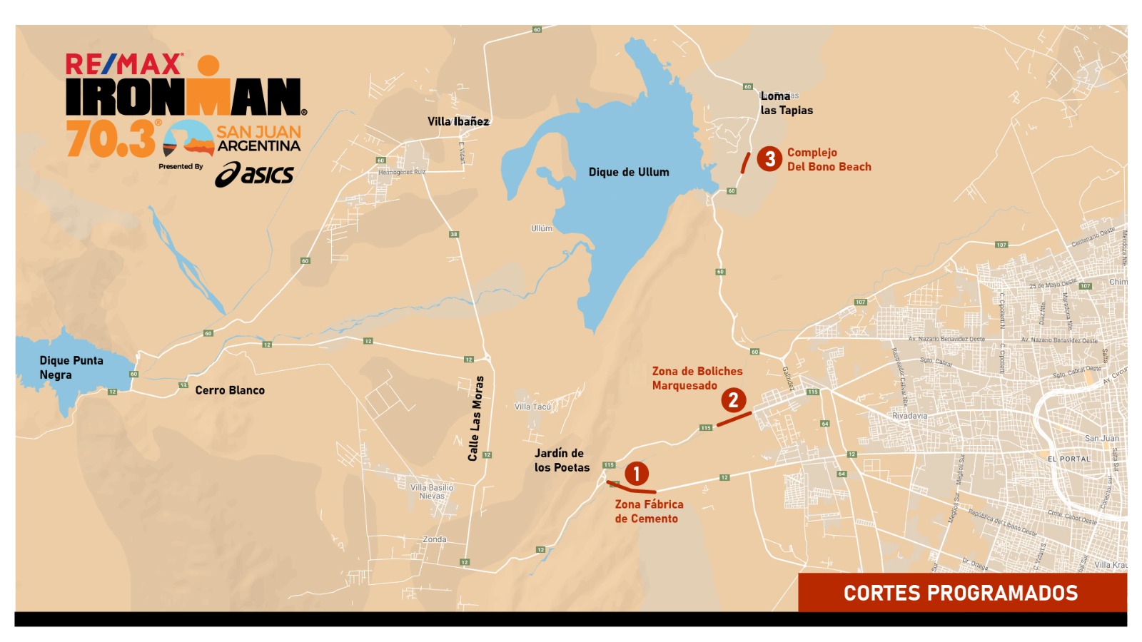 Quienes quieran presenciar la etapa de nado y posteriormente el cruce en el área de transición número 1, deberán ingresar por Ullum o Zonda antes de las 7 a.m.; luego de dicho horario la circulación estará cortada hasta la finalización de la etapa.